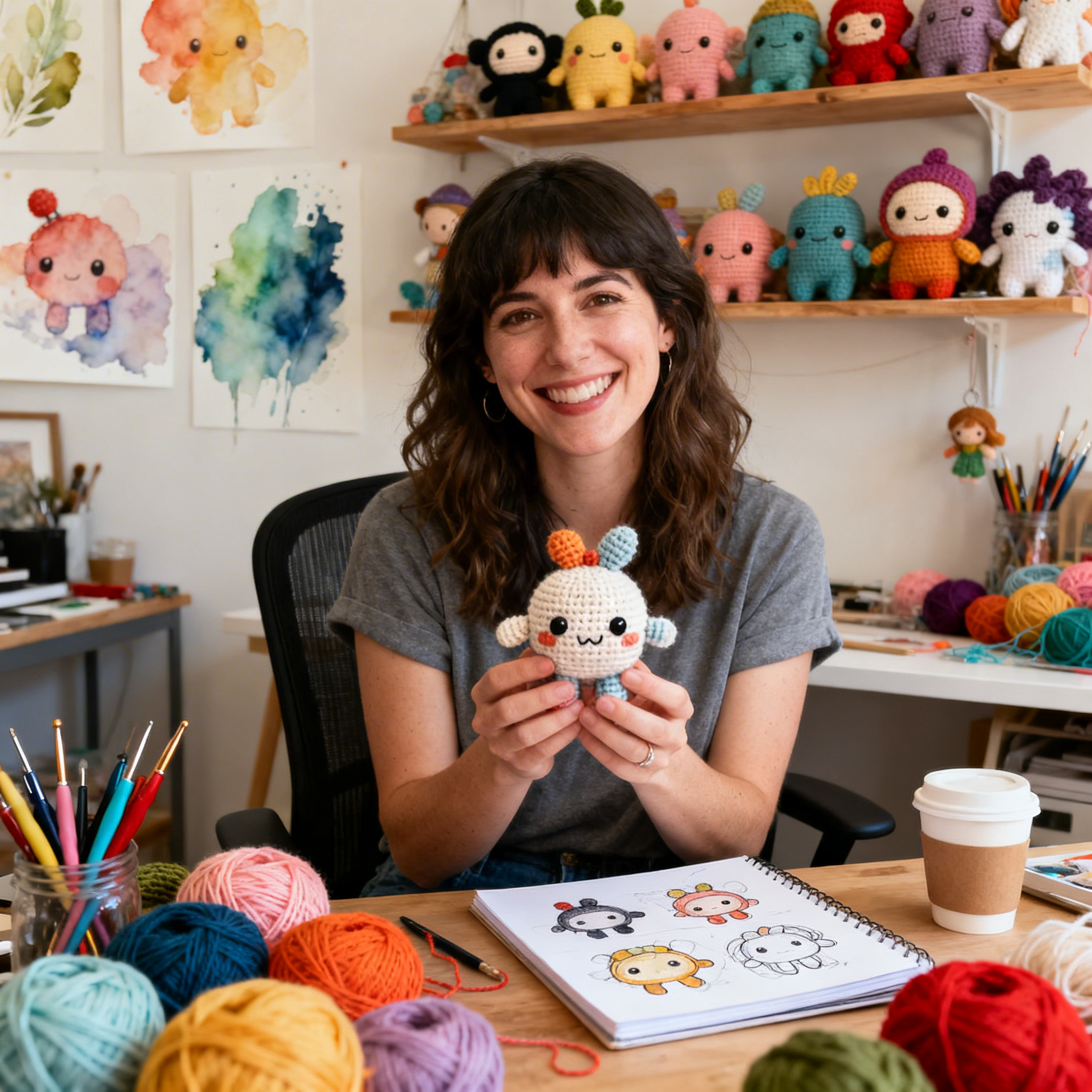 Clara discovered amigurumi during a trip to Japan in 2017, where she fell in love with the art of bringing tiny characters to life through crochet. Back home in Texas, she spent years studying color theory, design principles, and advanced crochet techniques — developing her own signature style that blends kawaii aesthetics with original character design.